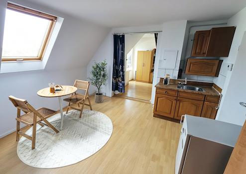 Wohnung 5 - DG Mitte: Ca. 30 m², 2 Zimmer (inkl. Küchenzeile), Bad, Abstellraum, Balkon (vermietet)