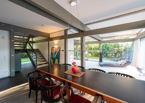 Dieses außergewöhnliche Anwesen ist eine einzigartige Möglichkeit, Wohnen und Gewerbe elegant auf 1.100m² Grundstück und über 450 m² Wohn- und Nutzfläche zu vereinen. Das Ensemble besteht aus zwei modernen HUF-Häusern, ...