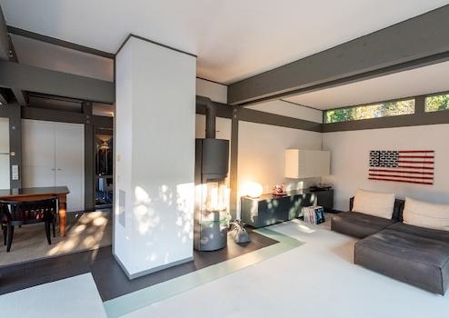 Das Rückgebäude aus dem Baujahr 2002 verfügt über ein überaus helles Erdgeschoss mit Waschküche und Technikraum, WC und einem sehr großzügigen, offenen Aufenthaltsbereich mit Küche, Essbereich und Kaminecke.