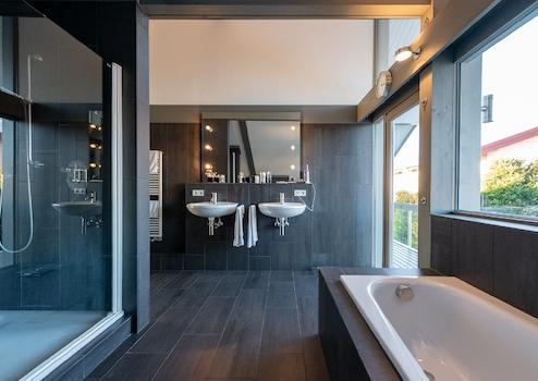- Badezimmer mit Dusche und Wanne