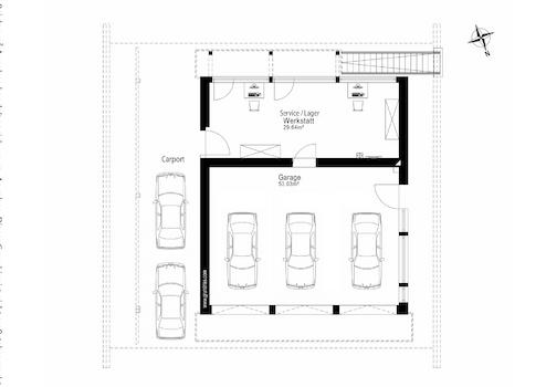 - Dreifachgarage (lichte Höhe von 2,37 m, Breite jeweils 2,59 m)