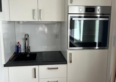 - Einbauküche mit Backofen, 2 Herdplatten und Kühlschrank