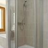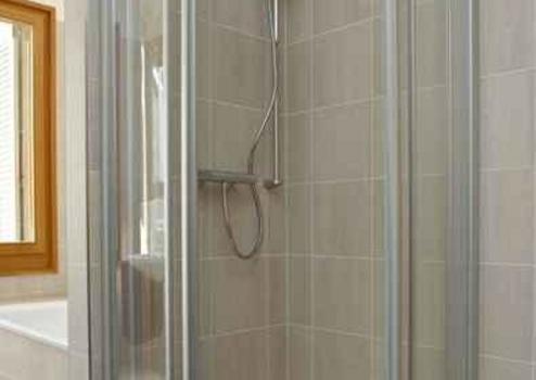 3. Stock mit Lift. Kombinierter Wohn-/Schlafraum mit komfortablem Doppelbett und kleinem Tisch mit Stühlen und Esstheke. Im Wohn-/Schlafraum integrierte Kochnische mit Backofen. Weißes Bad mit Badewanne. Im Flur ...