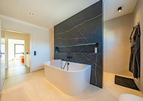 Die Luxusausstattung dieser Stadtvilla lässt keine Wünsche offen: Hochwertige Fliesenböden sorgen für ein elegantes Ambiente und können nach Ihren individuellen Vorlieben ergänzt werden. Die moderne Wärmepumpe als Befeuerungsart garantiert nicht nur umweltfreundliches Heizen, sondern auch niedrige Betriebskosten. Zudem erfüllt das Haus den KFW40 Standard, was Ihnen einen hohen energetischen Nutzen bietet. Diese Premium-Ausstattung wird Ihr Leben komfortabel und effizient gestalten.