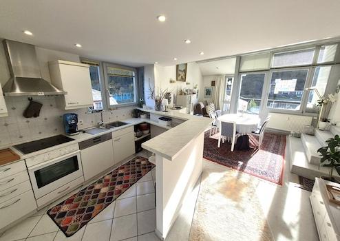 Die Wohnbereiche sind offen gehalten, sodass von Küche, Wohn- und Esszimmer die Mosel und die Wahrzeichen der Stadt zu sehen sind.