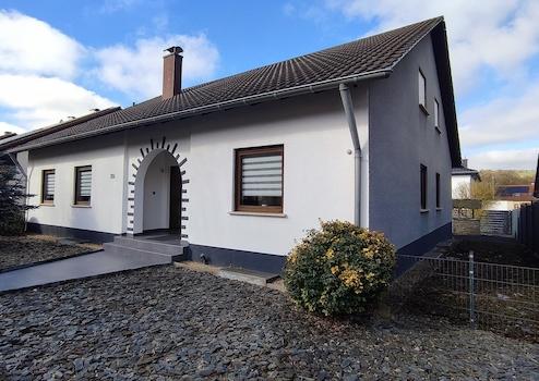 Angeboten wird diese im Jahre 1987 erbaute, schmucke Immobilie, auf einem Areal von rd. 600 Quadratmetern. Das sehr gepflegte Objekt ist voll unterkellert, freistehend, absolut ruhig gelegen, in einer Sackgasse. Die derzeitig vorhandene Wohn-/Wohlfühlfläche betragt ca. 135 m², wobei weiteres Ausbaupotenzial im Dachgeschoss vorhanden ist. Die Fenster und eine Dachterrasse sind bereits vorhanden. Von der großzügigen Diele des Hauses erreicht man auf der einen Seite das Esszimmer, die sehr geschmackvolle, halboffene Küche und den lichtdurchfluteten Wohnbereich, mit Zugang zur komfortablen, teilüberdachten Terrasse und in den pflegeleichten Gartenbereich. Auf der anderen Seite der Diele, befinden sich die beiden Kinderzimmer, das Badezimmer mit Vollausstattung und begehbarer Dusche sowie das Elternschlafzimmer mit Terrassenzugang. Die Treppe im Flur führt zum Keller. Hier befinden sich der kombinierte Öl-/Holzheizkessel der Marke Buderus, ein Öllagerraum, ein Keller zur Lagerung des Holzvorrates, eine ausgestattete weitere Küche, nebst Anschluss für Waschmaschine und Trockner. Ein in 2018 neu gemachtes stylisches Duschbad und zwei weitere Kellerräume, von dem einer Zugang zum Garten hat, komplettieren die Nutzfläche des Kellergeschosses. Für angenehme Stunden in der schönen Jahreszeit des Sommers garantiert der pflegeleicht angelegte Garten mit Gartenhaus und Grillplatz. Hier kann man die Seele baumeln lassen und mit der Familie und Freunden schöne Stunden im Freien verbringen. Die einseitig angebaute Doppelgarage (Tandemgarage) mit Grube vervollständigen dieses besondere Angebot. Wenn Sie interessiert sind, bitte ich um Kontaktaufnahme.
