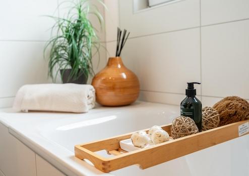 • Tageslichtbad mit Dusche und Badewanne im Obergeschoss (inkl. Badmöbel), vollflächiger LED-Beleuchtung