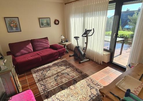 Im Untergeschoss befindet sich zusätzlich noch ein Schlafzimmer mit direktem Zugang zur Terrasse, ein Gästezimmer, ein Hobbyraum, ein Badezimmer und der Heizungsraum. Diese Ebene bietet vielfältige Nutzungsmöglichkeiten für Gäste, Hobby oder Wohnen mit mehreren Generationen.