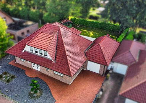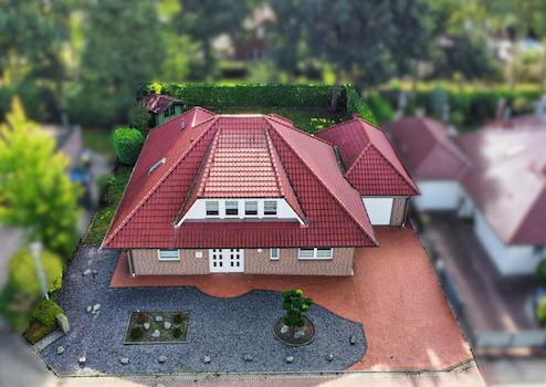 Dieser Bungalow bietet Platz und Komfort für die ganze Familie. Auf gut 200 m² können Sie sich hier heimelig einrichten. Schlaf- und Badezimmer gibt es auf beiden Etagen, wobei das Badezimmer im Erdgeschoss mit Fußbodenerwärmung und einer schönen Eckbadewanne ausgestattet ist und somit besonders zu kleinen Wellness-Nachmittagen am Wochenende einlädt. Ein weiteres Highlight im Erdgeschoss ist das geräumige Wohn-Esszimmer mit einer Wohnfläche von ca. 47,50 m². Die fast bodentiefen Fensterelemente und der Erker geben dem Raum eine ganz besondere Atmosphäre. Zusätzlich können Sie Ihre Kinder von hier aus sehen, während diese im eingezäunten und uneinsehbaren Garten toben. Im Jahre 2019 wurde die Gasheizung aus dem Hause Junkers eingebaut. Die geflieste Walmdachgarage verfügt über ein elektrisch bedienbares Tor sowie einen Dachboden, der für ordentlich Stauraum on top sorgt.