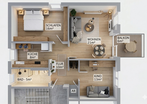 Auf rund 76 m² entsteht ein Wohngefühl, das man in dieser Form in Schwandorf nur selten findet: helle Räume, klare Linien und eine Ausstattung, die sofort überzeugt.
