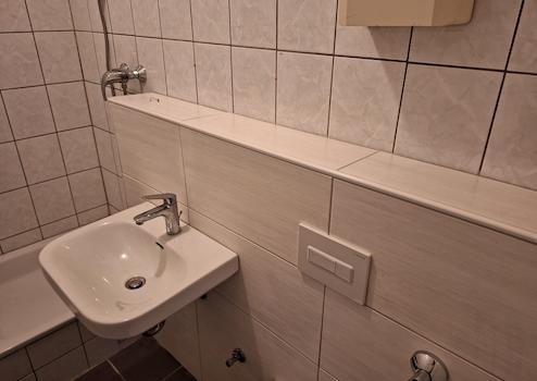 Die Wohnung verfügt über ein großzügiges Wohn- und Schlafzimmer, in dem sich problemlos eine Singleküche integrieren lässt. Die Wände wurden frisch gestrichen, ein neuer Laminatboden sorgt für ein helles und modernes Ambiente. Das neuere Badezimmer mit Dusche ist funktional und gepflegt. Ein Eingangsbereich mit Flur und Garderobe sowie eine neue Wohnungstür runden das stimmige Gesamtbild ab.