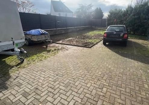 Großzügige Außenbereiche mit ca. sechs ausgewiesenen Stellplätzen auf dem Grundstück.