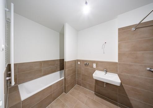 Badewanne, bodengleiche Dusche, Rückkanalfähiger Breitbandkabelanschluss, Fernheizung/Zentralheizung, Fern-/Zentralwarmwasserversorgung, Wärmetauscher, Handtuchheizkörper, Fußbodenheizung, Barrierearme Wohnungsgestaltung