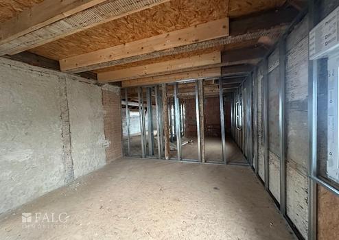 Die Fehlböden der Decken wurden entfernt und durch OSB-Platten auf stabilisierten Holzbalken ersetzt.