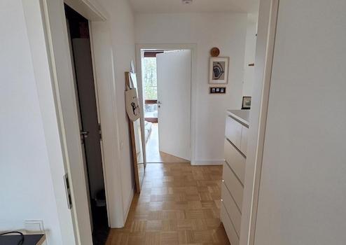 Die beiden Schlafzimmer, das Badezimmer sowie der Abstellraum sind über einen separaten, hinteren Flur erreichbar.