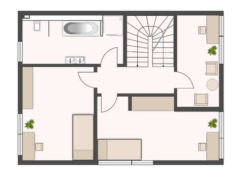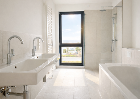 Im Obergeschoss erwarten Sie drei gut geschnittene Zimmer, die sich flexibel als Schlaf-, Kinder-, Arbeits- oder Gästezimmer nutzen lassen. Das stilvolle Tageslichtbad überzeugt durch eine hochwertige Ausstattung mit ebenerdiger Dusche, Badewanne sowie einem komfortablen Doppelwaschbecken – ideal für den Alltag einer Familie.