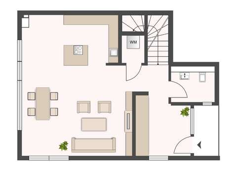 Das Erdgeschoss wird durch ein modernes Gäste-WC sowie einen praktischen Abstellraum sinnvoll ergänzt.