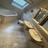 Ausgebauter Spitzboden mit Dachfenster mit Jalousie und Heizkörper