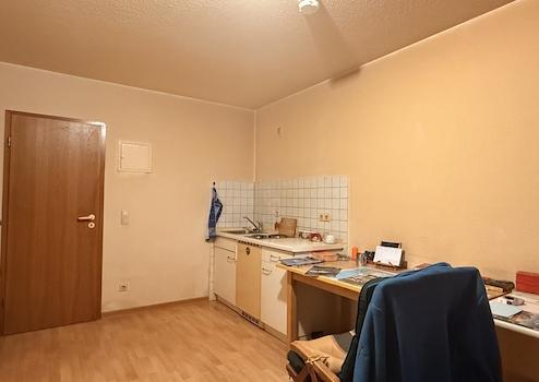 Der Zugang erfolgt über einen kleinen Flur, von dem aus das innenliegende Bad mit Waschbecken, WC und Dusche erreichbar ist. Der Wohnraum ist funktional geschnitten und mit einer kleinen Küchenzeile ausgestattet. Zustand und Ausstattung entsprechen dem Baujahr 1994. Bei einem künftigen Mieterwechsel ist mit Renovierungsbedarf zu rechnen, was Ihnen die Möglichkeit gibt, die Wohnung zeitgemäß zu modernisieren.