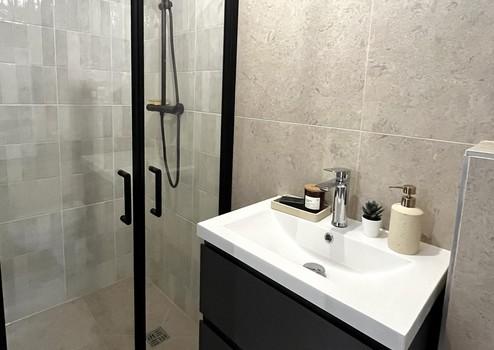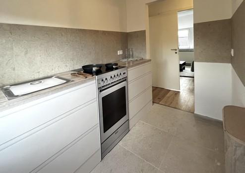 - Modern gestaltete Küche sowie vollständig neu ausgestattetes Badezimmer mit Regendusche