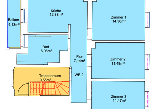 Wunderschöne 3-Zimmer-Wohnung mit Balkon und Küche