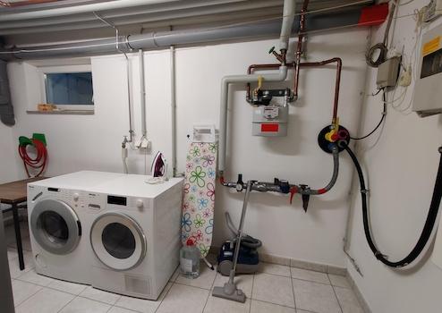 Das Haus ist voll unterkellert und beheizt. Es beherbergt einen großen Hobbyraum mit Sauna, einen Lagerraum sowie den Heizungsraum mit effizienter Gasbrennwertheizung inkl. Hauswirtschaftsraum. Die Installation einer Wärmepumpe sowie einer Photovoltaikanlage ist möglich. Über alle Etagen führt eine frei tragende Echtholztreppe.