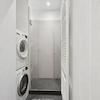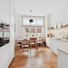 Die separate Küche ist mit einer Einbauküche sowie maßgefertigten Einbauschränken ausgestattet und verbindet Funktionalität mit zeitlosem Design. Weitere Einbauschränke im Flur und im Arbeitszimmer sorgen für praktischen Stauraum.