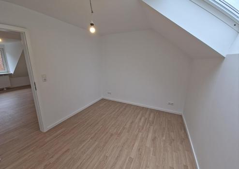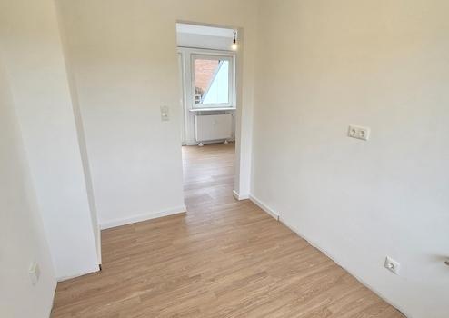Auch die Elektrik wurde vollständig erneuert. Neben einem neuen Sicherungskasten und FI-Schutzschalter wurde die Anzahl und Position der Steckdosen sinnvoll optimiert. Praktische Details wie beidseitige Steckdosen am Bett sowie ein Wechselschalter für die Beleuchtung erhöhen den Wohnkomfort im Alltag. Im Wohnbereich sind mehrere Lichtanschlüsse vorbereitet, sodass individuelle Beleuchtungskonzepte – beispielsweise auch mit Deckenspots – problemlos realisiert werden können.