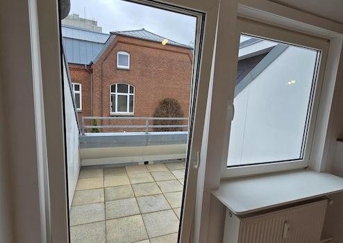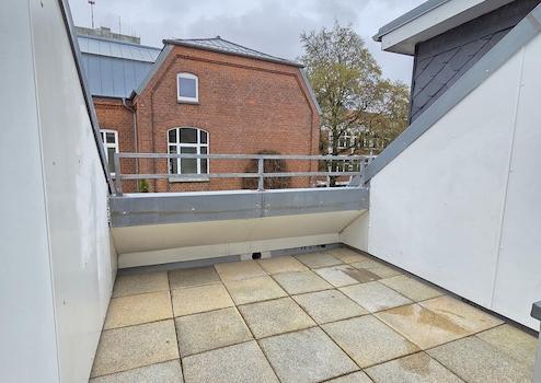 Der nach Süden ausgerichtete Balkon ist als geschützte Loggia ausgeführt und mit robusten Steinplatten versehen. Durch die bauliche Einfassung bietet er einen angenehmen Windschutz und lädt zum Aufenthalt im Freien ein.