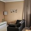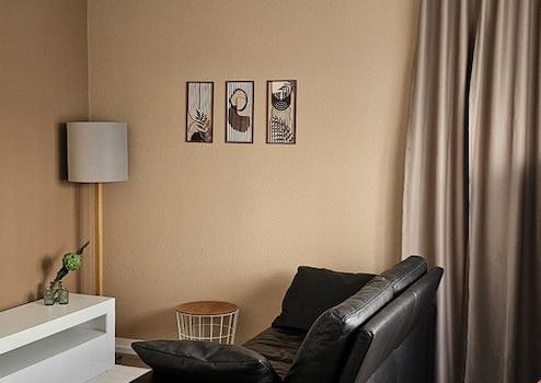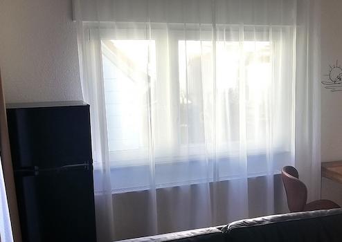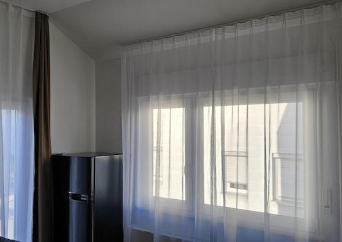 Die Wohnung ist auch mit Vorhängen ausgestattet und schön dekoriert.