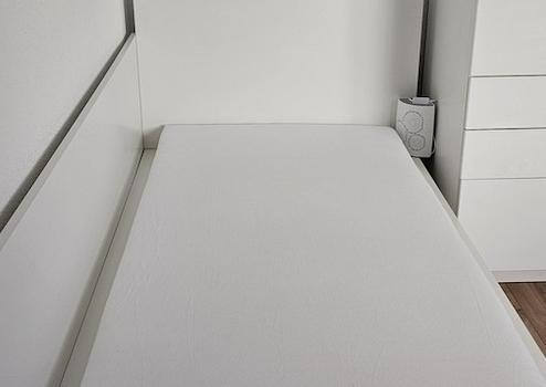 Bett mit Matratze zum schlafen.