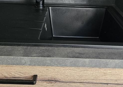 Kleine NEUE Einbauküche mit zwei Hängeschränken und zwei Unterschränken. Zweier Induktionsplatte.