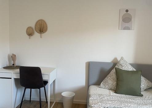 Alle vier Zimmer sind individuell und geschmackvoll eingerichtet und bieten jeweils einen angenehmen Rückzugsort mit durchdachter Ausstattung. Die voll ausgestattete Einbauküche bildet den zentralen Treffpunkt der WG und lädt zu gemeinsamen Koch- und Wohnmomenten ein.