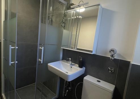 Ein modernes Badezimmer sowie ein Balkon mit angenehmer Aufenthaltsqualität sorgen für zusätzlichen Wohnkomfort und erweitern den Wohnraum ins Freie.