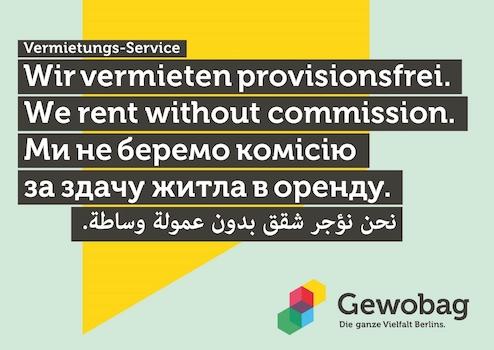 ACHTUNG: Unsere Angebote sind provisionsfrei. Sie zahlen für die Vermittlung des Mietvertrags keine Provision, sofern Sie nicht selbst einen Vermittler/Makler beauftragt haben. Im Auftrag der Gewobag tätige Personen werden keine Provision von Ihnen verlangen.