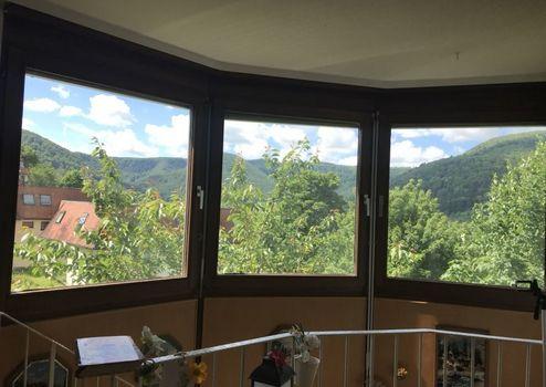 - großzügiger Wohn-Ess-Küchen-Bereich, sehr hell und mit herrlicher Aussicht (Boden Parkett geschliffen 2021, Fliesen in Küche)