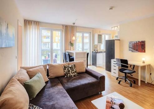 Der großzügige Wohnbereich ist hell und freundlich gestaltet und lädt zum Entspannen ein. Das Schlafzimmer bietet ausreichend Platz und sorgt für eine ruhige und komfortable Schlafumgebung. Die Küche ist funktional eingerichtet und bietet genügend Raum für die Zubereitung von Mahlzeiten.