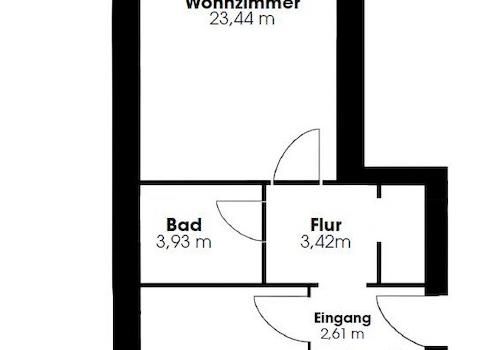 Der gut geschnittene Grundriss bietet ein helles Wohnzimmer mit angenehmem Wohnambiente sowie ein separates Schlafzimmer, das ausreichend Platz für Bett und Kleiderschrank bietet. Die Räume wirken durch die praktische Aufteilung großzügig und lassen sich flexibel einrichten.