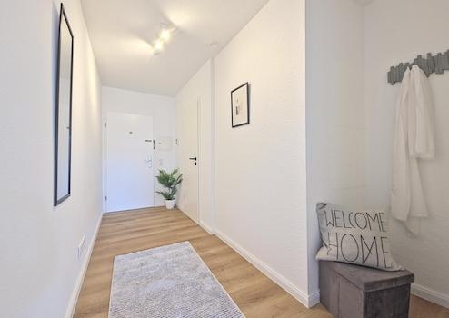 Der Grundriss ist durchdacht und bietet ein angenehmes Maß an Privatsphäre. Das Schlafzimmer, ein weiteres Zimmer (ideal als Arbeits-, Gäste- oder Kinderzimmer) sowie das moderne Duschbad mit Fenster sind vom Rest der Wohnung separiert.