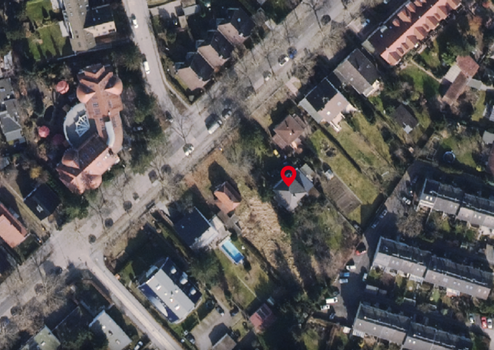 In der Mitte des Grundstücks steht ein dreistöckiges Haus, jedes Stockwerk besteht aus einer Einliegerwohnung. Seit Jahrzehnten wird das komplette Haus von einer einzigen Familie bewohnt. Das schöne Haus wurde vor dem 2. Weltkrieg in Steinbauweise mit Holzdachstuhl errichtet. Aus altersbedingten Gründen wird es verkauft und ist damit komplett mietfrei.