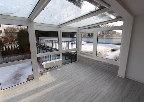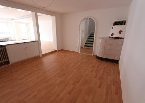Die hier angebotene Maisonette-Wohnung erstreckt sich über das 1. und 2. Obergeschoss. Über ein Treppe, die nur zu Ihrer Wohnung führt, gelangen Sie in das 1. Obergeschoss und befinden sich in einem Flur. Geradeaus gehend gelangen Sie in den Küchenbereich. Eine Einbauküche ist bereits vorhanden und kann entsprechend von Ihnen genutzt werden. Durch den angrenzenden Wintergarten wird dieser Raum angenehm erhellt und bietet zudem Platz eine Essgruppe unterzubringen. Wieder zurück im Flur befindet sich links neben der Wohnungstüre das Tageslichtbadezimmer. Dieses ist mit einer Badewanne, Waschbecken und WC ausgestattet. Gegenüber nutzen Sie den recht großen Raum als Kinderzimmer; hier lassen sich auf bequem zwei Kinder unterbringen. Optisch durch einen Flur abgetrennt befindet sich ein halboffener Raum, den Sie idealerweise als Esszimmer nutzen oder aber auch als Büro. Das angrenzende und voluminöse Wohnzimmer gestalten Sie ganz nach Ihren Wünschen und Bedürfnissen. Ein kleiner Balkon ist von hier aus zu betreten. Vom Eingangsbereich heraus gelangen Sie über eine Treppe in das 2. Obergeschoss. Hier befindet sich, neben einer kleinen Toilette, noch ein offener Bereich mit Dusche. Bevor Sie abschließend in das Schlafzimmer gelangen, lässt sich davor der Bereich als Ankleide nutzen. Im Schlafzimmer haben Sie Platz für Ihre Doppelbettanlage und die diverse Möblierung. Die Böden im Wohn- und Schlafbereich sind mit pflegeleichtem Laminat ausgelegt.