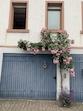 Das Haus steht mit der Vorderseite direkt an Bürgersteig und Straße.