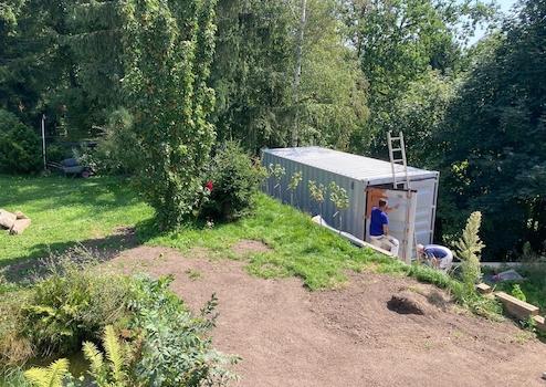 • 2 Kaminöfen (mit Wärmespeichersteinen) mit Außenschornsteinen im