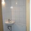 Die helle Badezimmer bietet eine Eckdusche sowie eine Badewanne, Waschbecken, WC und viel Tageslicht mit praktische Abstellmöglichkeiten, Geste WC mit Waschbecken.