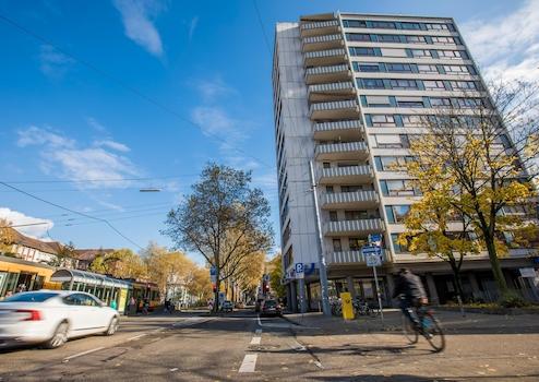 Auch die Verkehrsanbindung ist hervorragend: Eine Straßenbahnhaltestelle liegt nur wenige Schritte entfernt und ermöglicht eine schnelle, direkte Verbindung zum Karlsruher Hauptbahnhof sowie in andere Stadtteile. Zusätzlich sorgen gut ausgebaute Radwege für eine bequeme Mobilität innerhalb der Stadt. Über die nahegelegene Südtangente besteht zudem eine optimale Anbindung an das überregionale Straßennetz und die Autobahn, die in wenigen Fahrminuten erreichbar ist.