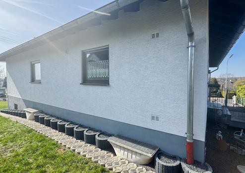 - Sanierung von Dachrinnen, Fassadenanstrich und Entwässerungsleitungen
