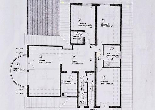 Diese große Wohnung mit einer Fläche von 148,49 m² ist über einen separaten Eingang und Treppenhaus erreichbar. Sie umfasst vier Zimmer, ein großes Badezimmer mit Badewanne und Dusche, ein zusätzliches Gäste-WC sowie ein separates Duschbad. Zwei Balkone und ein großzügiger Wohnbereich schaffen ein helles, offenes Wohngefühl. Der zentrale Bereich verbindet alle Räume miteinander und bietet mit dem Kamin Platz für einen Esstisch.