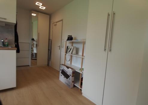 Das Apartment verfügt über einen kleinen Flur mit Garderobe, von dem aus das Bad und das Zimmer abgehen.