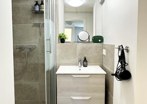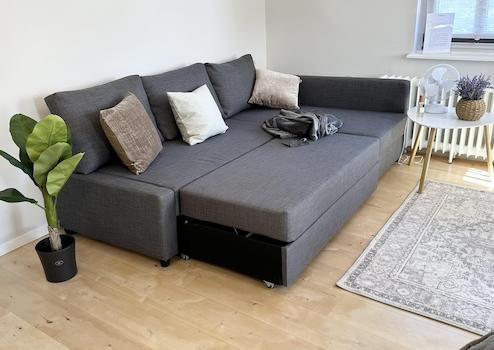 Die Wohnung verfügt über ein neues Badezimmer mit getrenntem WC sowie eine gut ausgestattete Küche inklusive Geschirrspülmaschine. Im Wohnzimmer steht ein Smart TV zur Verfügung.
