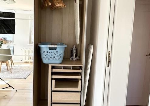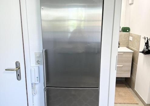 Eine eigene Waschmaschine zur freien Benutzung steht im Keller des Hauses.